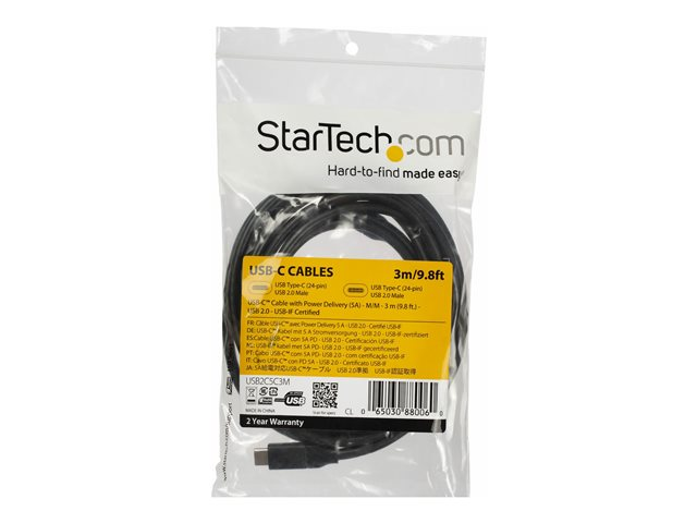 10 ft / 3m - USB-IF Certified - 5A PD - USB 2.0 - USB Type C Charging Cable - USB C Fast Charge Cable (USB2C5C3M) - USB-kabel - USB-C (hann) til USB-C (hann) - Thunderbolt 3 / USB 2.0 - 5 A - 3 m - svart