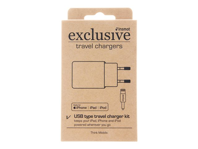 Produktbeskrivelse Insmat travel charger strømadapter - USB Produkttype Strømadapter Dimensjoner (BxDxH) 5.7 cm x 4.7 cm x 2.6 cm Type utgangskontakt USB Påkrevd nettspenning AC 100-240 V Spenningstilførsel 5 V Maks elektrisk strøm 2.4 A Kabler Lightning til USB-kabel - 1 m -