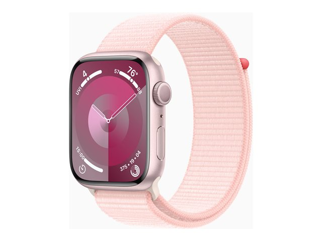 45 mm - rosa aluminium - smartklokke med sportssløyfe - myk dobbeltlagsnylon - lys rosa - 64 GB - Wi-Fi, Bluetooth, UWB - 38.7 g