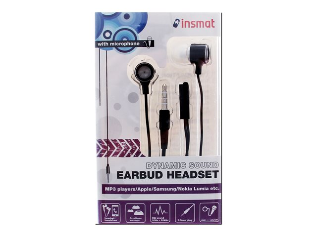 Produktbeskrivelse Insmat - hodesett Produkttype Hodesett - kablet Farge Svart Hodetelefonenes formfaktor I øret Overføringsteknologi Kablet Lydmodus Stereo Mikrofon På kabel Mikrofondriftsmåte Mono -