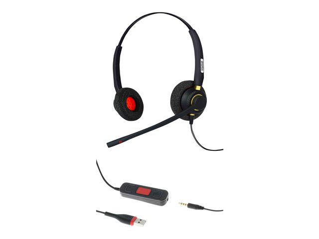 Adjustable headband and bendable click-stop microphone boom arm work to enhance comfort. Premium nylon composite materials provide an ultralight weight design. Soft and comfortable foam/leatherette ear cushion.