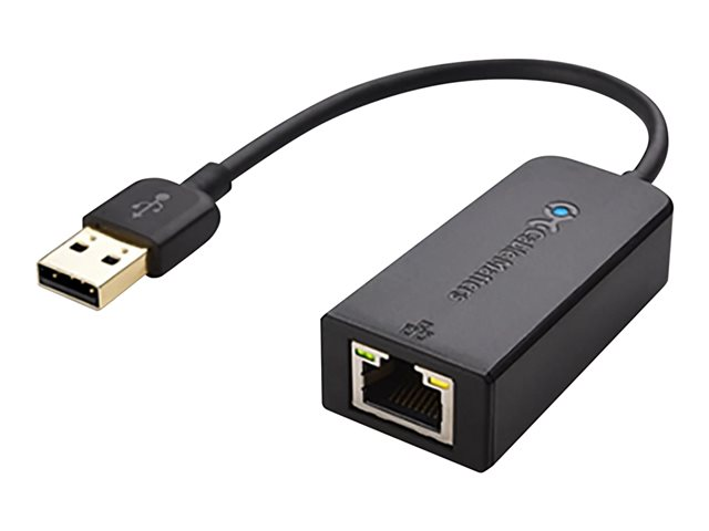 The ADPT-USB-ENET supports up to 100 Mbps transfer speed for reliable data transmission in a Crestron Flex system. LED indicators provide diagnostic information on the connection and data transfer.