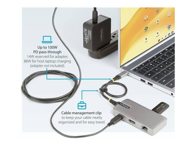 StarTech.com USB-C Multiport Adapter, 4K 60Hz HDMI w/HDR, 2-Port 5Gbps USB 3.0 Hub, 100W Power Delivery Pass-Through, GbE, USB Type C Mini Docking Station, Works with Chromebook certified