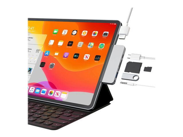 World's first removable and replaceable grip secures the hub onto your iPad Pro and allows compatibility with screen protectors and protective cases.