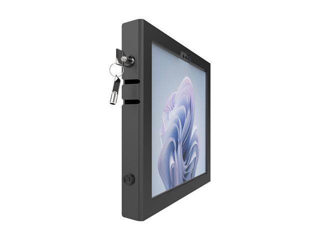 The Compulocks Surface Pro 8-11 Apex Enclosure Wall Mount offers a secure solution for displaying tablets with a recommended display size of 13 inches. Constructed from aluminum, this enclosure ensures durability while enhancing aesthetic appeal. The wall-mountable design allows for flexible placement options, suitable for various settings, whether in an office, retail space, or educational environment. With a locking mechanism that uses a key, the mount provides added security for the device, ensuring it remains safe from unauthorized access. Included with the mount are two keys for convenience.