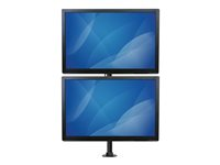 The vertical dual-monitor mount holds two displays, one above the other, in a vertical configuration. The height of the monitors can be adjusted, along the 27.5" (700 mm) pole.
