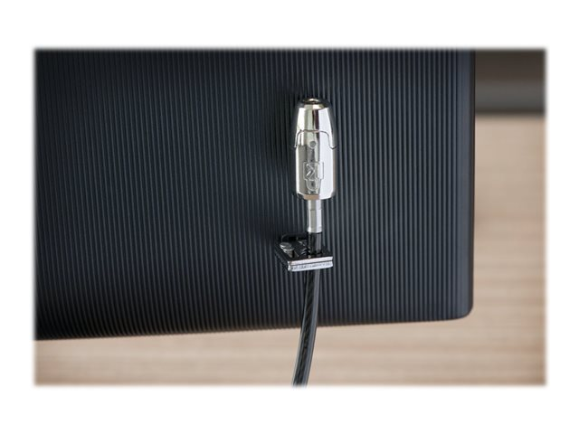 - 2.4m (8-foot) carbon steel cable is cut-resistant and anchors to desk, table or any fixed structure
