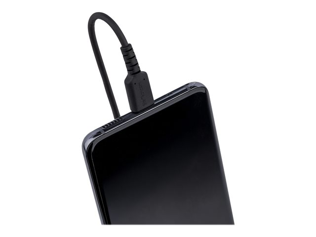 StarTech.com 20in (50cm) USB C Charging Cable, Coiled Heavy Duty Fast Charge & Sync USB-C Cable, High Quality USB 2.0 Type-C Cable, Rugged Aramid Fiber, TPE, 3A, S20, iPad, Pixel - Durable Male to Male USB, Black - USB-kabel - 24 pin USB-C (hann) til 24 pin USB-C (hann) - USB 2.0 - 3 A - 50 cm - rullet sammen - svart