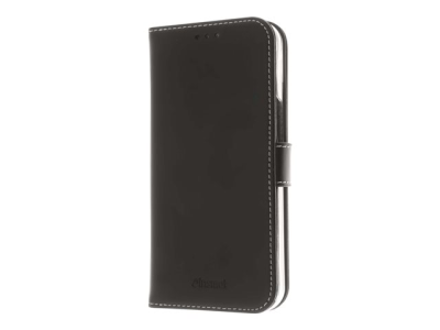 Insmat Exclusive - Lommebok for mobiltelefon - ekte skinn, termoplast-polyuretan (TPU), kartong+papir+aluminiumsfolie, bomullssting - svart - for Apple iPhone 13 mini