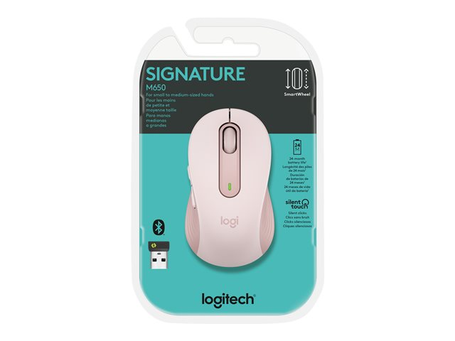 Logitech Signature M650 - Mus - optisk - 5 knapper - trådløs - 2.4 GHz, Bluetooth - Logitech Logi Bolt USB-mottaker - rosa