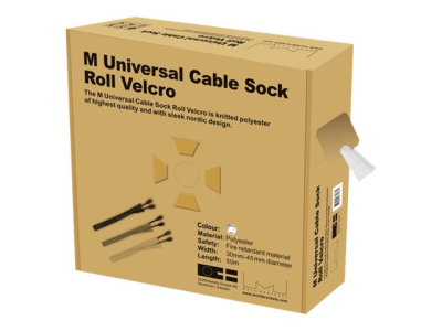The M Universal Cable Sock Velcro is knitted polyester of highest quality and with sleek nordic design. The M Universal Cable Velcro Socks hold any type of cables for example scart, HDMI, CRT, VGA and other main leads and expands easily.